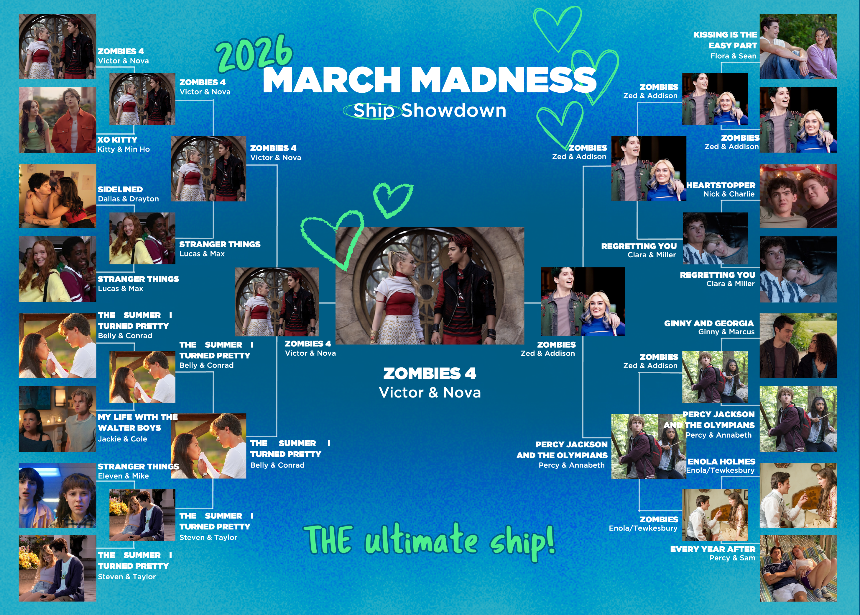 We had just as exciting matchups in our ship competition, with battles between all our favorite on-screen couples. After a close final round, we finally have a winner to triumph over all the rest. And the couple who hold the most special place in our hearts is… NOVICTOR!! Nova and Victor from Zombies 4 have won Young Entertainment’s 2026 battle of one true pairs.