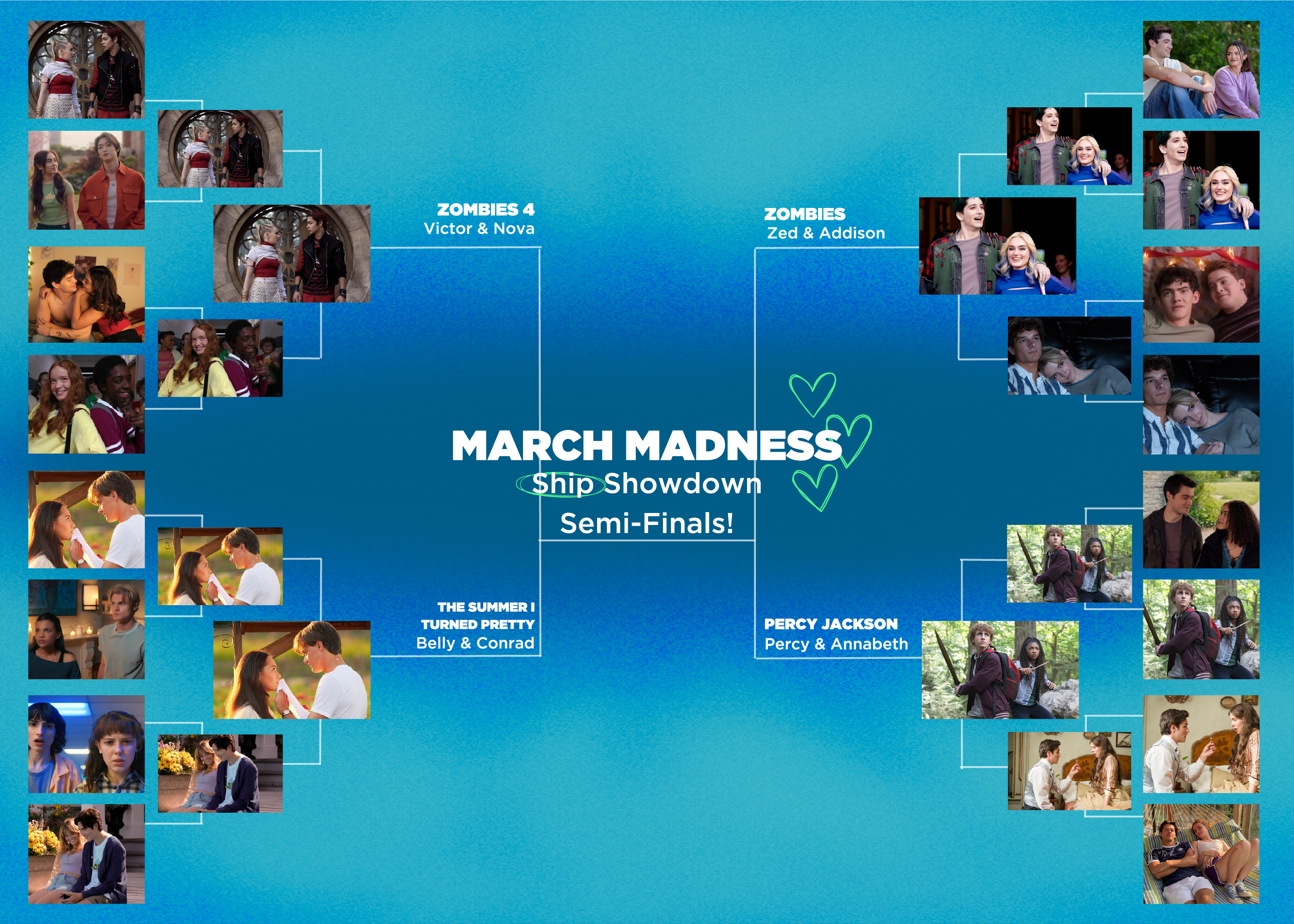In Round Three of our March Madness, pick your fav teen ships seen on TV or in movies from each bracket. Which couple has had the most heartfelt moments that leave you feeling giddy inside. May the best ship win!